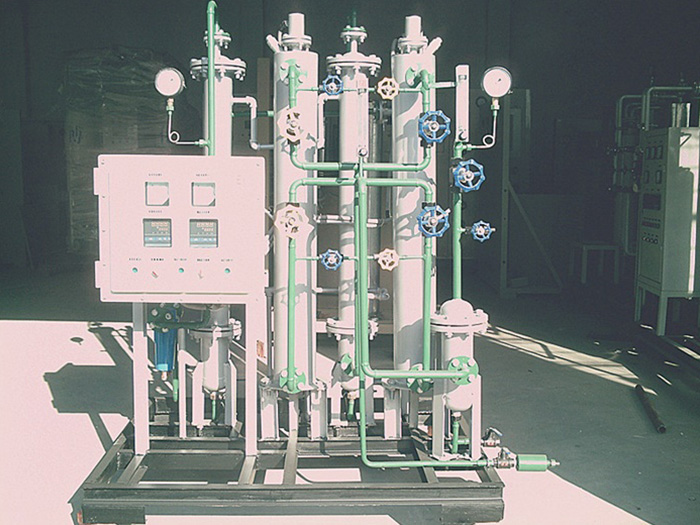 ??以純度大于97%的工業(yè)氫氣為原料氣,采用鈀觸煤為催化劑,通過氧和氫生成水,再通過冷凝干燥兩級處理,達到除氧和水的目的,最后再通過除塵過濾器,去除氫氣中的塵埃顆粒等。