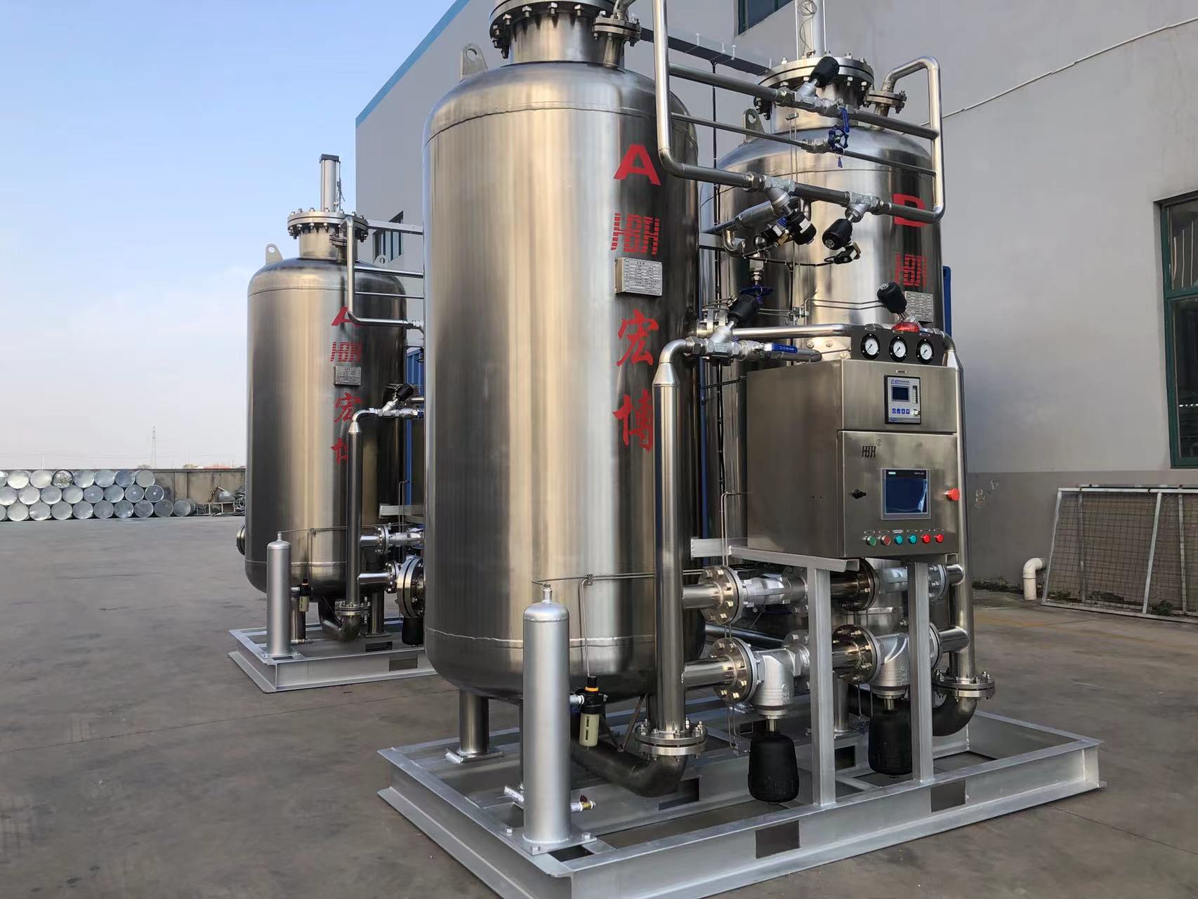 ??針對(duì)食品包裝,果蔬菜氣調(diào)庫等行業(yè)對(duì)制氮設(shè)備的需求,我司通過動(dòng)態(tài)數(shù)學(xué)模型優(yōu)化設(shè)計(jì)出了HBJH系列食品制氮機(jī),該設(shè)備具有運(yùn)行穩(wěn)定、開機(jī)方便快捷、產(chǎn)氮速度快、無需特別訓(xùn)練的操作人員等特點(diǎn),還具有結(jié)構(gòu)緊湊、占地面積小等特點(diǎn)。